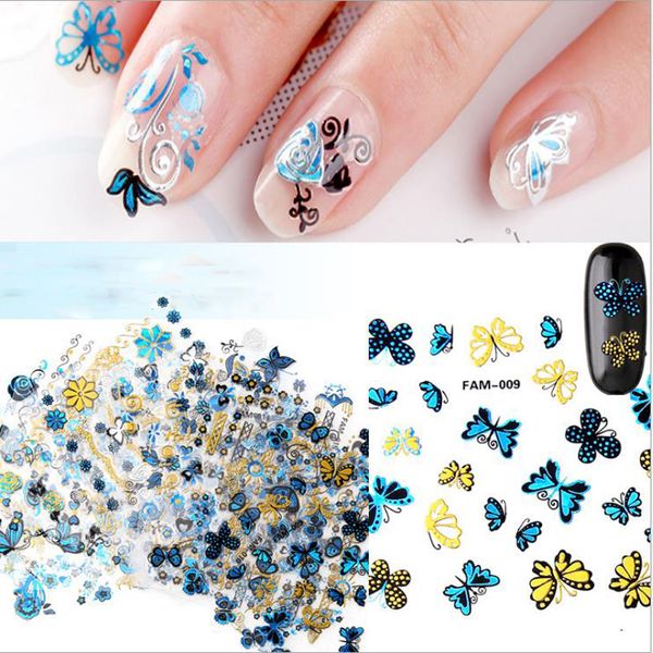 Nail Art Decorations Stickers Diy Manicure Tools 3d Butterfly Blue Flower Design Adhesive Transfer Nail Sticker Decals Vinyl Wall Stickers Acrylic