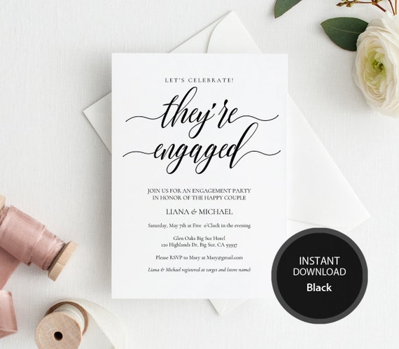 Editable Pdf Template 5x7 Engagement Party Invitation Instant Download Calligraphy They Re Engaged Invite Printable Digital Dp110 81
