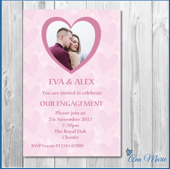 10 Engagement Party Invitation Cards Personalised Invites Pink Heart Design Including Envelopes