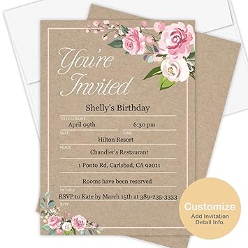 Amazon Com Custom Invitation Cards 50 Pack Envelopes