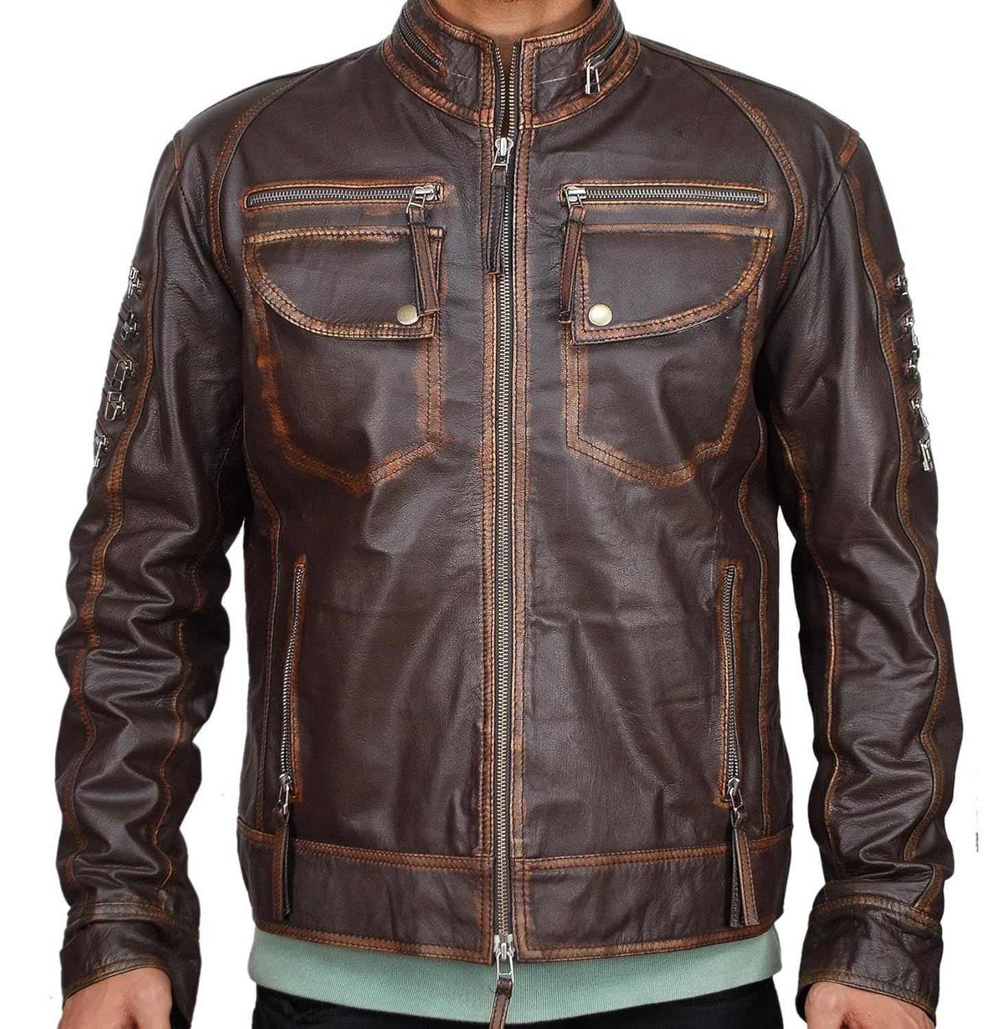 Mens Designer Distressed Brown Classic Biker Brown Leather Jacket