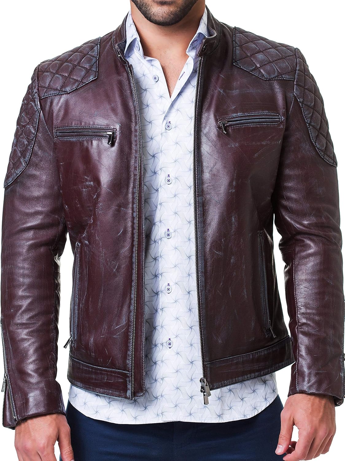 Mens Designer Leather Jacket Slim Fit Genuine Lambskin Motorcycle